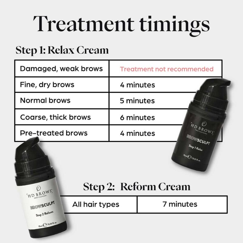 Step 1 Relax Cream gently breaks down the hair bonds, allowing brows to be shaped and positioned before being fixed in place with Step 2 Reform Cream (sold separately).